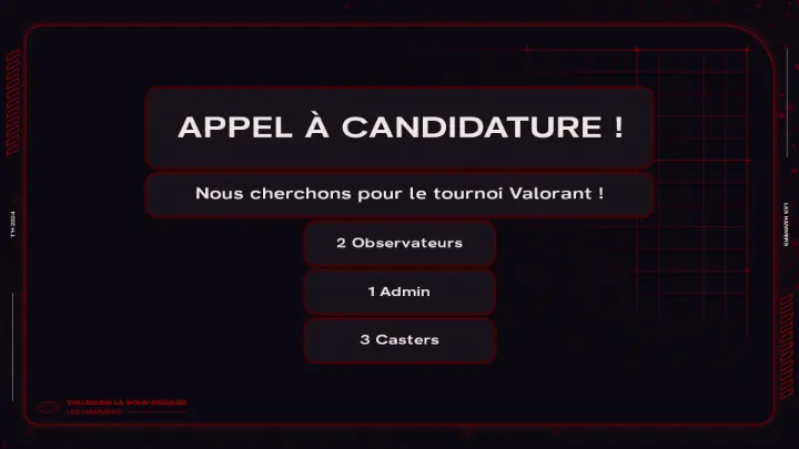Afin d'assurer ce live, nous ouvrons des candidatures pour sélectionner les futurs Observateurs/Observatrices, Casteurs/Casteuses et Administrateurs/Administratrices.